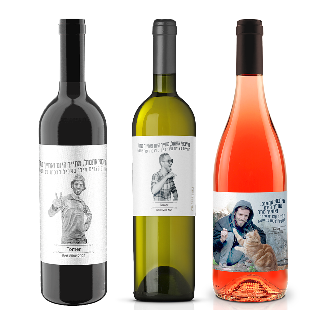 שלושה בקבוקי יין שונים (750 מ"ל כל אחד) לזכר תומר שלמה מיארה. שני יינות לבנים, שניים אדומים ואחד רוזה.