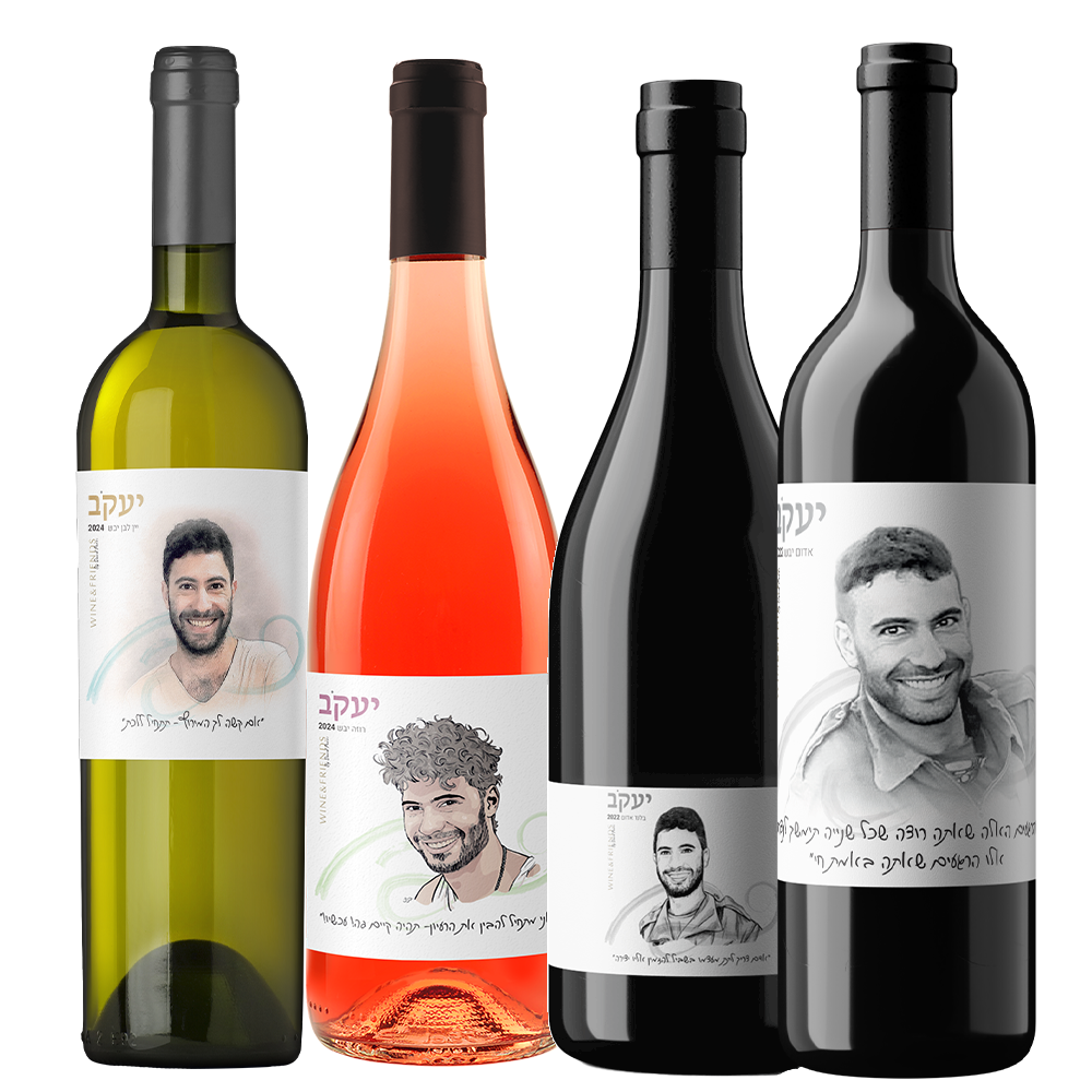 מארז ארבעה בקבוקי יין לזכר רס"ל יעקב עוזרי.