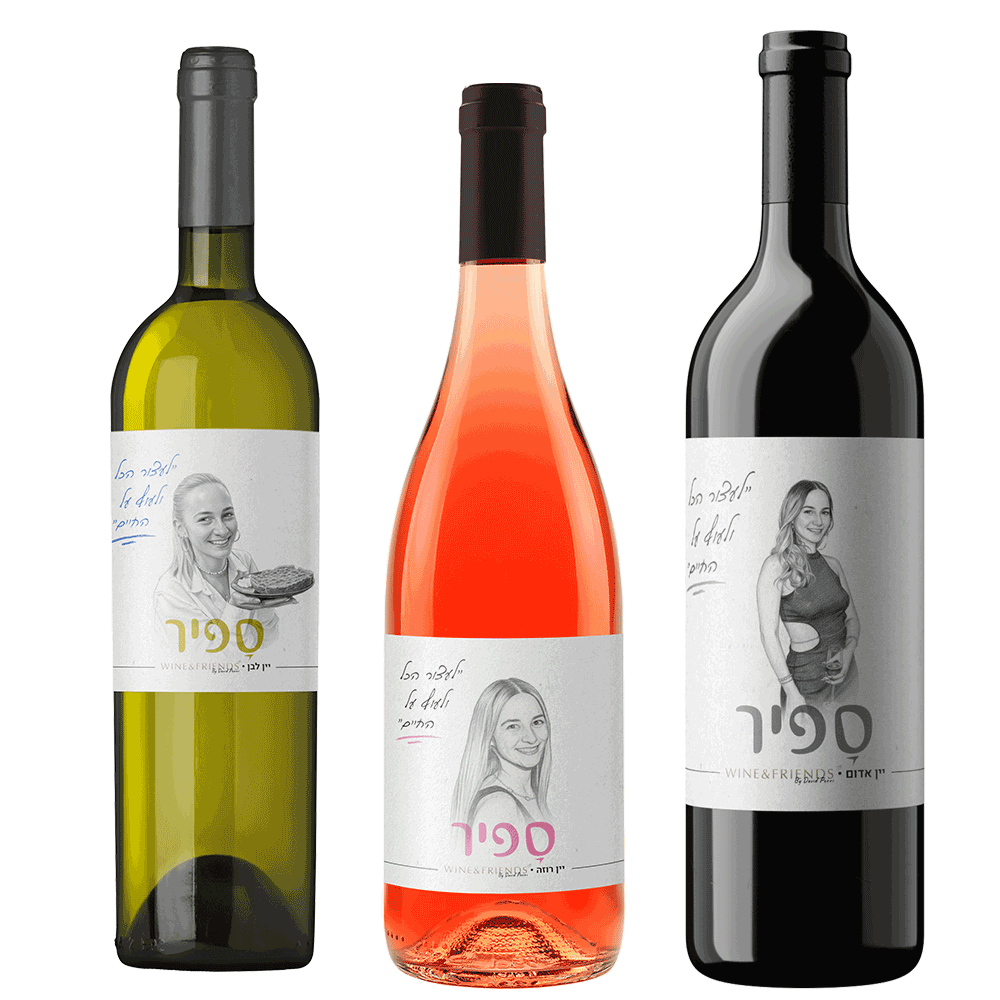 מארז יין הכולל שלושה בקבוקי יין שונים לזכרה של ספיר בילמס ז"ל.