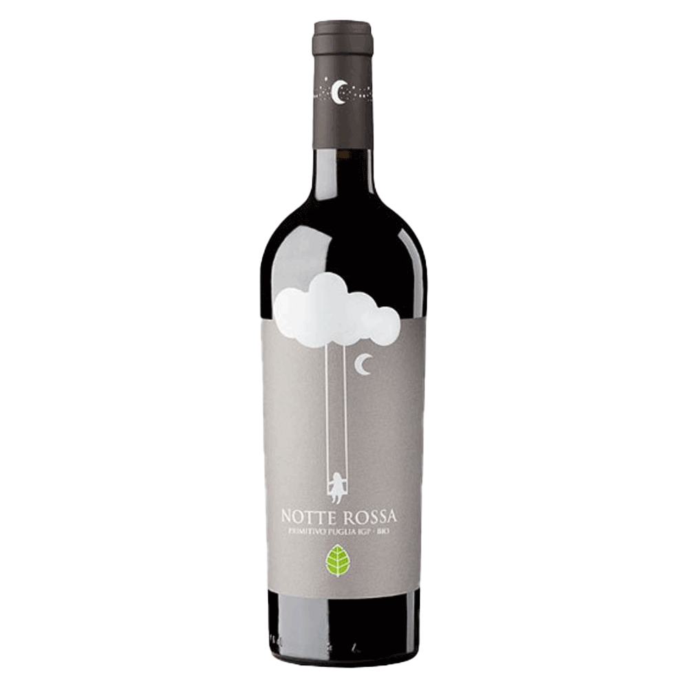 יין אדום אוֹרְגָּנִי, מזן הענבים פרימיטיבו (זינפנדל). צבעו ארגמן עמוק.