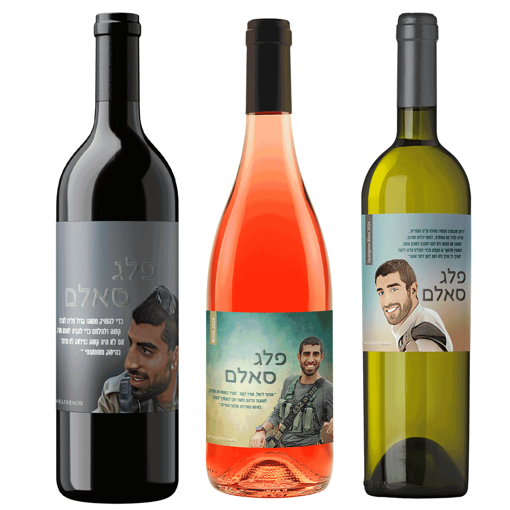 שלושה בקבוקי יין לזכר פלג סאלם.