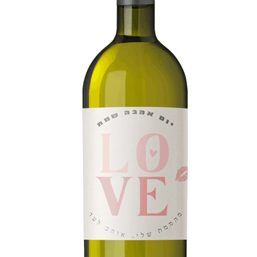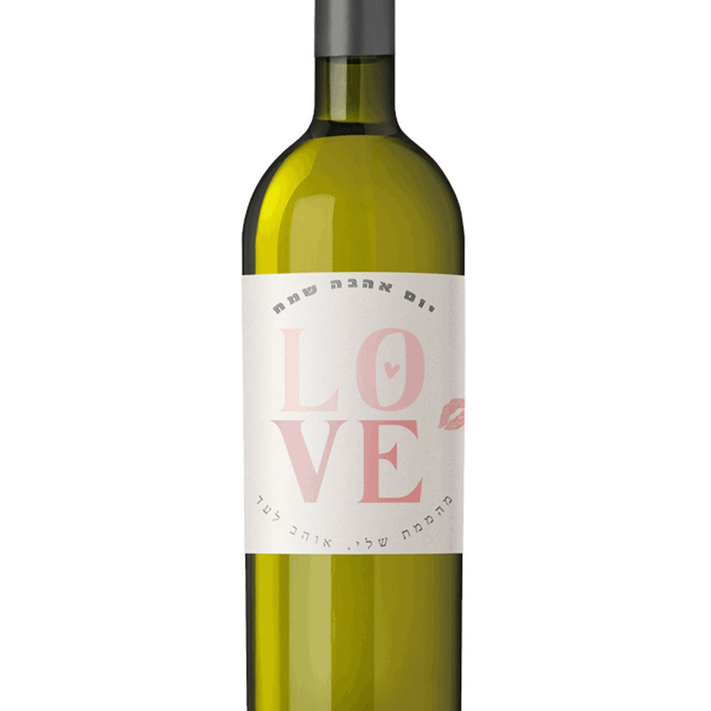 תווית ליין עם הקדשה או מסר אישי ליום האהבה. התווית מודפסת אצלנו במדפסת מיוחדת ומודבקת על גבי התווית הקיימת או ישירות על הזכוכית ביינות שלנו.