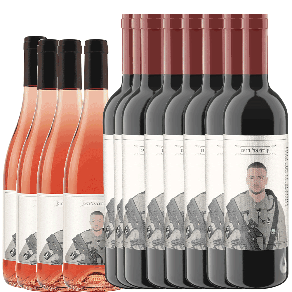 12 בקבוקים של יינות לזכרו של דניאל דנינו יינות אדומים ורוזה.